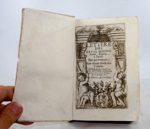 MARINO (Caval.) - Lettere del Caval. MARINO. Gravi, Argute e Facete. Non piu stampate, con alcuni Poesie del-l’istesso… In Venetia, Sarcino, 1628. In-8, vélin souple du temps. Beau frontispice gravé, charmant exemplaire.