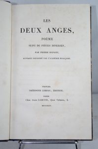DUPONT (Pierre) - Les Deux Anges. Poème, suivi des pièces diverses. Provins, Lebeau, 1844. In-8, dem. basane romantique du temps, le dos orné. Exemplaire parfait.