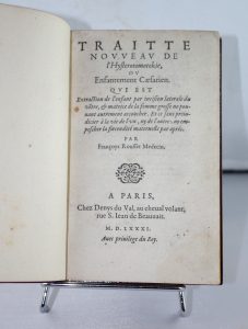 ROUSSET (Francoys) - Traité nouveau de l’Hysterotomotokie, ou enfantement Caesarien, qui estl’Extraction de l’enfant par incision laterale de ventre, & matrice de la femme grosse ne pouvant autrement accocher. Et ce sans preiudicier à la vie...