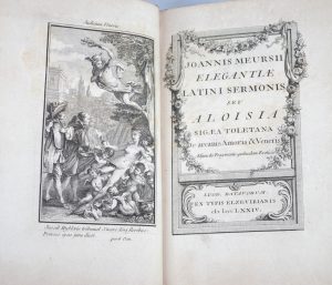 MEURSII (Joannis) - Elegantia Latini Sermonis, seu Aloisia sigea Toletana… Lug. Batavorum, Elzeviers, 1774. In-8, veau écaille du temps, le dos à nerfs orné, tranches jaspées. Joli exemplaire, étonnement frais et bien relié.