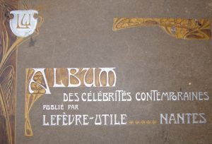 [MUCHA (Alphonse), GUILLAUME (Albert), LHOIR (Luigi), POULBOT, ...] - ‎‎LEFEVRE-UTILE. ‎ Album des Célébrités Contemporaines publié par Lefèvre-Utile. ‎ 1905. Nantes, (1905), in-8 oblong, couverture imprimée en relief, or et argent...