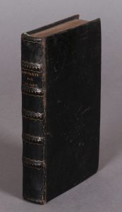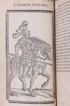 In-12 (17 x 10), plein basane noir, dos à 5 nerfs, titre doré, roulettes aux coupes, tranches dorées. Illustré de 104 figures sur bois en pleine page. 1f. (titre)-3ff. (épitre dédicatoire)-4ff. non chiffrés (préface)-168 ff. paginés de 1 à 128 et de 179 à 218 (les ff. 129 à 178 n’existent dans aucun exemplaire)-13 ff. non chiffrés (tables et approbation).