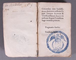 [REBUFFI (Pierre)]. Concordata inter Sanctissimum dominum nostrum Papam Leonem decinum & Christianissimum dominum nostrum Regem Franciscum huius nominis primum. Paris, (1532).