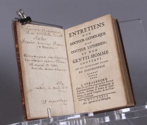ENTRETIENS D'UN DOCTEUR CATHOLIQUE, d’un Docteur luthérien, et d’un gentilhomme converti sur les principaux points de controverse. Strasbourg, chez Jean-François le Roux, 1739.