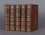 Cinq vol. in-12 (17 x 11), plein veau raciné, dos à 5 nerfs, pièces de titre en maroquin rouge, pièces de tomaison en maroquin vert, compartiments décorés, tranches rouges.