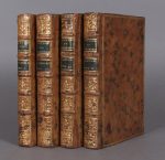 Quatre vol. in-8 (20 x 13), plein veau brun marbré de l’époque, dos à 5 nerfs, compartiments décorés, pièces de titre et de tomaison en maroquin vert, triple filet d’encadrement aux plats, filet doré aux coupes, tranches jaspées.