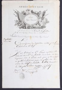 Duplicata, en-tête gravé, Armée d’Italie, Etat Major Général, (25 x 38).
