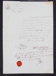 Campagne de 1813, cachet (Emp. Fran.) et cachet sec, armoiries du baron Larrey.
