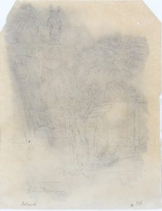 Croquis à l’encre et mine de plomb sur papier calque, 29,5 x 23.