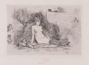 Félicien ROPS. La Grande femme à la fourrure, assise. 1878.