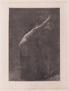 Il s’agit du même sujet que l’héliogravure Curieuse, mais reproduite en sens inverse à partir d’un autre dessin.