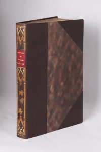 In-8 (25,5 x 17), demi-maroquin et coins brun, dos lisse à incrustations de maroquin blond et beige, pièce de titre en maroquin rouge, tête dorée. Reliure signée Blanchetière.