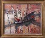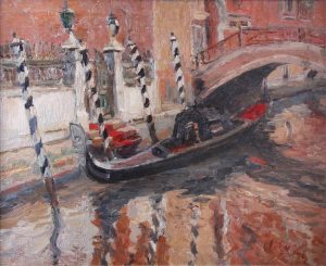 Sous passe-partout de tissu beige, dans un cadre orné, doré.