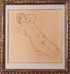 Sous verre et passe-partout, dans un cadre orné, doré.