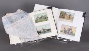 •Exposition de 1905 : Album (30 x 24) : 28 cartes postales, 107 timbres (la plupart dessinés par Rassenfosse) et un plan de la ville imprimé sur un foulard-souvenir.