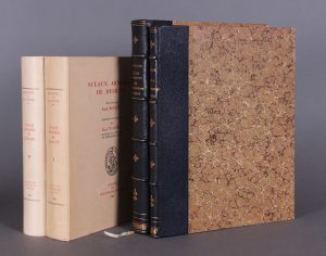 •PONCELET (E.) Les Sceaux et les chancelleries des Princes-Évêques de Liège. Liège, Société des Bibliophiles Liégeois, 1938. In-4 (32 x 25), demi-chagrin noir, dos à 4 nerfs. Un des 50 exemplaires sur papier Featherweight (n°160). Bel exemplaire abondamment illustré.