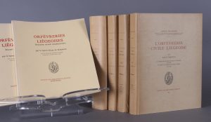 ▬Joint : SCHAETZEN (Oscar de). Orfèvreries liégeoises. Recueil complémentaire et Deuxième recueil complémentaire. Liège, Société des Bibliophiles liégeois, 1979 et 1983. Deux vol. in-4 (30,5 x 26), broché.