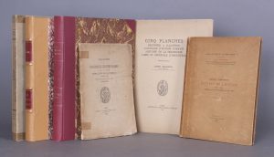 •BRASSINNE (Joseph). Cinq Planches destinées a illustrer l’ouvrage d’Eugène Poswick histoire de la seigneurie libre et impériale d’Argenteau. Liège, Société des Bibliophiles Liégeois, 1947. In-4 (31,5 x 25). Un des 15 exemplaires sur papier de Hollande réservés aux membres de la Société (n°109). Illustré de 5 planches.