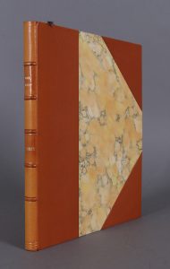In-4 (29 x 24,5), demi-chagrin et coins fauve, dos à 5 nerfs, titre doré.