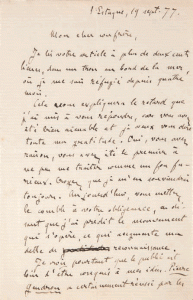 Emile ZOLA (1840-1902) - Lettre autographe signée à un cher confrère [M. de La Pommeraye]. L'Estaque, 19 sept(embre) (18)77. 1 p. et demi, in-8.