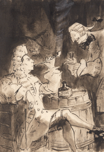 • 10 dessins originaux, dont 9 de divers formats, à l'encre et au lavis, contrecollés sur 7 feuillets blancs, et un dessin, «volant», signé et dédicacé pour Monsieur Henri Prost.