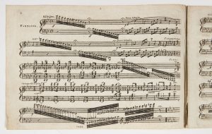 BEETHOVEN, Ludwig van. Fantaisie pour le pianoforte (…) dediée à son ami Monsieur le Comte François de Brunswick (...) Œuvre 77 (…) 2f.30. Vienne, Artaria, s.d.[1810-1811]. In-4 oblong (230 x 330 mm) de (2)-11-(1) pp. (titre et musique...