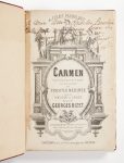 BIZET, Georges. Carmen. Opéra comique en 4 actes tiré de la nouvelle de Prosper Mérimée. Poème de H. Meilhac et L. Halévy. Paris, Choudens Père et Fils, s.d. [1875]. In-4 (280 x 180 mm) de (4)-351 pp. (titre lithographié, catalogue des...