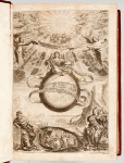■ Exemplaire sur grand papier, revêtu d’une extraordinaire reliure romaine de l’époque, richement décorée et aux armes du pape Innocent X, le protecteur de Kircher.