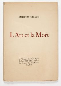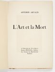 ARTAUD, Antonin. L'Art et la Mort. Paris, Robert Denoël, A l'enseigne des Trois Magots [Imp. François Bernouard], 1929. In-4 (285 x 195 mm) de (2)-87-(9) pp. : broché, couverture crème imprimée en noir et bistre, conservé sous étui-chemise...