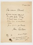 • Une lettre autographe signée de Jean Cocteau à Paul Éluard félicitant ce dernier pour sa revue