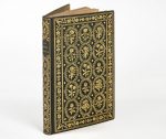 maroquin bleu, dos et plats entièrement recouverts d'un décor doré formé de fleurs quadrilobées entourées chacune d'une couronne de laurier (quinze sur les plats, six sur le dos), guirlande encadrant les plats, fleurettes dans les interstices, dentelle intérieure, filet sur les coupes, coiffes guillochées, tranches dorées ; conservé dans étui-reliure à glissière de maroquin rouge (Trautz-Bauzonnet).
