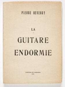 REVERDY, Pierre. La Guitare endormie. Contes et poèmes. Paris, à l'Imprimerie Littéraire, 1919. In-8 (192 x 141 mm) de (96) pp. : broché, couverture crème, plat supérieur imprimé ; conservé sous étui-chemise moderne avec dos de maroquin...