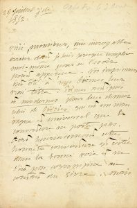 Au sujet de la sixième édition de ses Poésies complètes. Il déplore « une incroyable erreur dont je suis presque complice moi-même pour ne l’avoir point apperçue. Vos imprimeurs ont ôté à mes Poëmes leur vrai titre : Poëmes antiques et modernes pour leur donner celui de Poësies qui est un nom vague et universel que la couverture ne porte pas. Fort heureusement cette honnête couverture est restée dans la bonne voie et ne s’est pas corrompue au contact du livre. Mais je vous prie de ne pas faire tirer une grande quantité de ces titres si déjà il n’y en a pas autant que d’exemplaires de cette édition, et rétablissez le titre tel qu’il est sur la couverture des exemplaires que vous m’avez envoyés »... Il le prie de lui envoyer également quatre exemplaires de ses Poëmes et quatre de son Théâtre : « Faites partir tout cela je vous prie dès que vous recevrez ma lettre et répondez-moi sur cette erreur d’impression. Je ne sais comment je n’y ai pas pris garde sur les épreuves. Je crois que c’est parce que les caractères étaient trop gros. J’avais pourtant vu bien des pailles dans l’œil de l’imprimeur mais cette poutre est restée dans le mien. Mais vous, n’y regardez-vous jamais ? »...