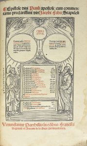 •Jacques LEFÈVRE D'ÉTAPLES. Epistole divi Pauli apostoli, cum commentariis [...] Jacobi Fabri Stapulensis. Paris, François Regnault et Jean de La Porte, [1517].