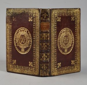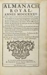 ALMANACH royal, année MDCCXXXV. Paris, d'Houry, 1735. In-8, maroquin rouge aux armes encadrées d'une large dentelle dorée, dos à nerfs orné de fleurs de lis, tranches dorées (reliure de l'époque).