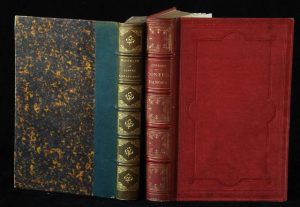 Relié demi-chagrin rouge, dos à nerfs orné, toutes tranches dorées.