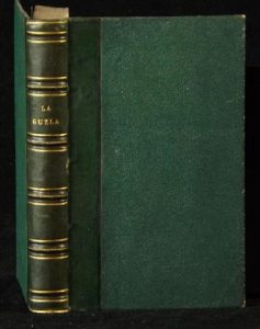 Relié demi-basane verte, plats de papier granité dito, dos à nerfs surlignés de filets or en plein et en pointillé alternés.