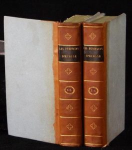 tomes en 2 volumes in-12 reliés demi-basane havane, dos lisse orné, plats de papier ardoise, tranches peintes en vert.