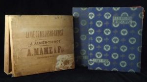 Belle publication ornée de 365 compositions en lithographie & taille-douce, en couleurs et camaïeu, dont 37 planches pleine page hors-texte en couleurs sous serpentes, 15 gravures en taille-douce et 22 lithographies par James Tissot. Exemplaires tels que parus conservés dans leur boites de livraison en bois, titrées avec étiquettes de livraison (frottées).