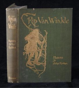 Washington IRVING - Rip Van Winkle. With drawing by Arthur RACKHAM London, William Heinemann 1905, première édition et second tirage (novembre), in-4° collationné complet des 50 planches en couleurs sous serpentes légendées dont une en...