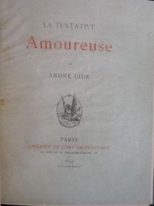 GIDE André - La Tentative Amoureuse. P., Librairie de l'Art Indépendant 1893, in-12 carré (15,5 x 19,5 cm.) de 43 pp.- 1f..