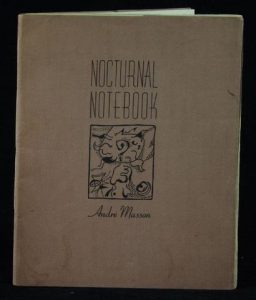 MASSON André - Nocturnal Notebook. New-York, Curt Valentin 1944, plaquette petit in-4° brochée, déchirure au pli du dos. Édition originale illustrée de 14 dessin à pleine page.