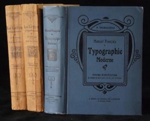 THIBAUDEAU Francis - La Lettre d'Imprimerie et 12 notices illustrées sur les arts du livre. P., Bureau de l'Édition 1921, 2 forts volumes in-8° brochés, illustrés.