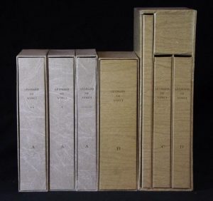 VINCI (Léonard de) Manuscrits A - B - C - D. Grenoble, Roissard pour le Cercle des Professeurs Bibliophiles de France 1972, 6 volumes in-8° et in-4°., dont un de fac-similé, sous chemises-étuis.