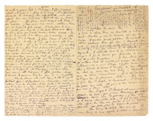 Très belle correspondance spirituelle et sur sa vie au Sahara, avec le Chanoine Caron, Supérieur du petit Séminaire de Versailles, auteur de l’ouvrage Jésus adolescent, qui a beaucoup influencé Charles de Foucauld. En route, entre Beni-Abbès & Insalah 5 janvier 1907. Il lui écrit « au soir d’une étape du fond d’un gourbi d’où je repartirai avant le lever du soleil. » Il le remercie de tout son cœur pour sa lettre et l’envoi d’images, dont « l’aquarelle de la basilique de Jésus adolescent », qu’il sera heureux de recevoir. « Que le cœur de Jésus arrange toutes choses pour que ce bon prêtre de Paris & votre petit Louis de Gonzague fassent l’un & l’autre la volonté du Céleste Bienaimé quellle qu’elle soit. Si c’est Sa volonté qu’ils partagent un jour ma vie, je l’en bénirai ; s’Il ne le veut pas, que Sa Volonté se fasse ! » Il repart pour le Sud, et on peut lui écrire à Beni-Abbès. « Quelles douleurs en France ! Je prie avec vous pour les âmes de notre pauvre pays ; je prie aussi pour vous, pour vos chers jeunes gens, pour votre basilique de Jésus adolescent. Daignez aussi prier pour moi, pour les Musulmans, les Africains, pour cette Algérie & ce Maroc »... Tamanrasset 9 juin 1908. Très belle et longue lettre. Il remercie le Père Caron pour ses lettres, l’envoi d’images et « combien m’est précieuse la médaille de Jésus adolescent bénie par vous à Nazareth ! » Il n’est pas étonné des difficultés qu’il a rencontrées en Terre Sainte, ni de l’opposition des Franciscains, malheureusement : « En Terre-Sainte plus qu’ailleurs tout est visiblement marqué de la souffrance ; on ne peut essayer d’y faire aucun bien sans y trouver les épines et le calice du divin Amant ou tout au moins son rude labeur de Nazareth avec ses heures d’amertume »... À sa demande, il lui parle de sa vie : « Si vous trouvez des âmes appelées de Jésus à travailler dans le même champ que moi, prédisez-leur “dura et aspera” comme dit St Benoît. Le coin de Sahara que je suis seul à défricher a 2.000 kilomètres du Nord au Sud & 1.000 de l’Est à l’Ouest, avec cent mille Musulmans dispersés dans cet espace, sans un chrétien, si ce n’est les militaires français de tous grades », une centaine au maximum, seuls les officiers étant français. « Je n’ai pas fait une conversion sérieuse depuis 7 ans que je suis là », sauf un petit enfant et une vieille femme : « Comme conversion sérieuse, c’est zéro […] plus je vais, plus je crois qu’il n’y a pas lieu de chercher à faire des conversions isolées [...] la masse étant de niveau trop bas, l’attachement à la foi musulmane étant trop fort, l’état intellectuel des indigènes leur rendant bien difficile présentement de reconnaître la fausseté de leur religion & la vérité de la nôtre. [...] On n’aurait, en cherchant des conversions isolées, que des conversions intéressées & seulement apparentes, ce qui est la pire des choses ». Il pense qu’avec les Musulmans « des demi-barbares », la voie n’est pas la même qu’avec les indigènes, les sauvages fétichistes, ni qu’avec les civilisés. Avec les Musulmans, il pense qu’il faudrait d’abord les « civiliser », les instruire, et que la conversion viendra ensuite : « car l’islamisme ne tient pas devant l’instruction ; [...] il tombe comme la nuit devant le jour. L’œuvre à faire ici, comme avce tous les Musulmans, est donc une œuvre d’élévation morale : les élever moralement & intellectuellement par tous les moyens : se rapprocher d’eux, [...] lier amitié avec eux, faire tomber par les relations journalières & amicales leurs préventions contre nous, par la conversation, l’exemple de notre vie modifier leurs idées », les instruire et faire leur éducation au moyen d’écoles et de collèges… « Ce résultat obtenu, leurs idées seront infiniment modifiées, leurs mœurs améliorées par là même, & le passage à l’Évangile se fera facilement. – Sans doute Dieu peut tout ; Il peut par sa grâce convertir les musulmans & qui Il veut en un instant ; mais jusqu’ici Il n’a pas voulu le faire »... Il ne faut pas se décourager devant la difficulté de l’œuvre, mais au contraire s’y atteler avec force : « Que faire, seul devant cette tâche ? par vocation, je dois avoir 1 vie cachée, solitaire, & non une vie de parole & de voyages. [...] Je tâche de concilier les deux choses : j’ai 2 ermitages à 1500 kilomètres l’1 de l’autre. Je passe 3 mois dans celui du Nord, 6 mois dans celui du Sud, 3 mois à aller et venir chaque année ». Il tâche de mener dans ses ermitages une vie de travail et de prière, cloitré. En route, il pense à la fuite en Égypte. Mais dans les deux cas, dans ses ermitages comme en route, « je tâche de prendre le contact autant que possible avec les indigènes, leur rendant de petits services, causant avec eux, les amusant même comme des enfants par des images ou des contes », tâchant de commencer un peu à les éduquer... Mais cela n’est rien à côté de ce qu’il faudrait faire : « il faudrait non 1 ouvrier, mais une centaine, avec des ouvrières, & non seulement des ermites, mais aussi & surtout des apôtres, allant & venant, prenant le contact & aussi instruisant. – Ce peuple touareg est très particulièrement intéressant, parce que, musulman de nom seulement, peu fervent, il est très près de nous par ses mœurs, sa vivacité d’intelligence, & sa facilité à s’ouvrir. Malheureusement il est loin de nous par son extrême ignorance, ses préventions et son peu de goût pour l’instruction ». Il envisage d’emmener avec lui un Touareg à son prochain voyage en France, quelque temps chez sa sœur « qui habite la campagne et a une nombreuse famille, pour lui faire voir notre vie de famille... Mais quel dévouement et quelle patience il faudra pour supporter pendant 15 jours un de ces pauv