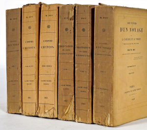 HUC, Évariste-Régis.- 3 ouvrages sur la Chine, la Tartarie et le Tibet, en 6 vol. in-8° brochés (nombreuses rouss., pet. défauts). Paris, Gaume frères.