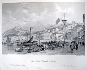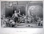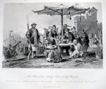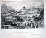 Contient 4 titres gravés et 124 gravures sur acier d'après Allom, architecte à qui l'on doit e.a. les églises de Notting Hill et d'Highbury, figurant un dîner de cérémonie chez un mandarin, l'aqueduc de bambou à Hong Kong, la culture et préparation du thé, la cangue, l'entrée du temple de Confucius à Shanghai, un marchand de lanternes, etc.
