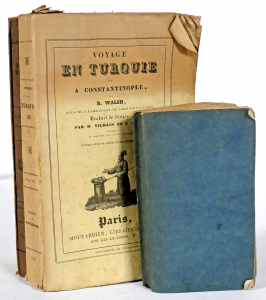 ▬WALSH, R.- Voyage en Turquie et à Constantinople. P., Moutardier, 1829 (nombreuses pet. rouss., dos et haut de la couv. sup. salis). Illustré de 2 cartes dépl.