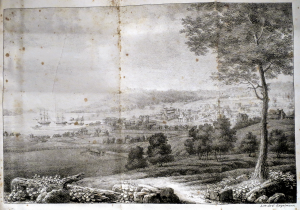Complet de la vue dépliante de Hobart-Town lithographiée par G. Engelmann, et de la carte aquarellée dépliante gravée par G. Lemaître d'après un dessin de A.R. Frémin. "Terre de Van Diemen" était le nom utilisé par la plupart des Européens pour désigner l'île de Tasmanie, découverte par l'explorateur néerlandais Abel Tasman qui lui avait donné le nom du gouverneur général des Indes orientales néerlandaises, Antonio van Diemen.