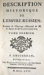 STRAHLENBERG, Philip Johan von.- Description historique de l’empire russien. Traduite de l’ouvrage allemand. Amsterdam et se trouve à Paris, Desaint & Saillant, 1757. 2 vol. in-12° : xx-383, xi-[1]-406 pp.